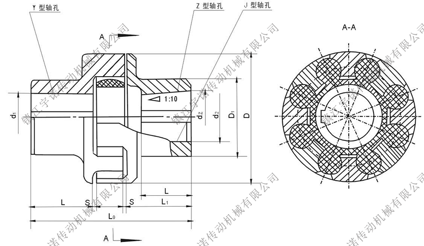 ML型基本型梅花形彈性聯(lián)軸器是由兩個(gè)帶凸爪形狀相同的半聯(lián)軸器和彈性元件組成,利用梅花形彈性元件置于兩半聯(lián)軸器凸爪之間,以實(shí)現(xiàn)兩半聯(lián)軸器的聯(lián)接?;拘兔坊ㄐ螐椥月?lián)軸器更換彈性元件時(shí)兩半聯(lián)軸器需要沿著軸向移動(dòng)才能達(dá)到更換彈性元件的目的。