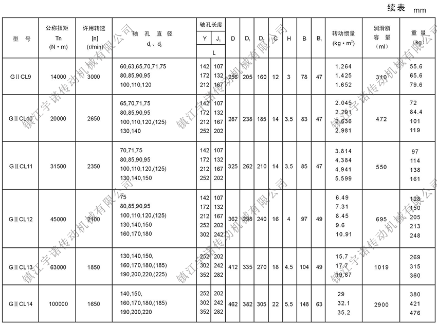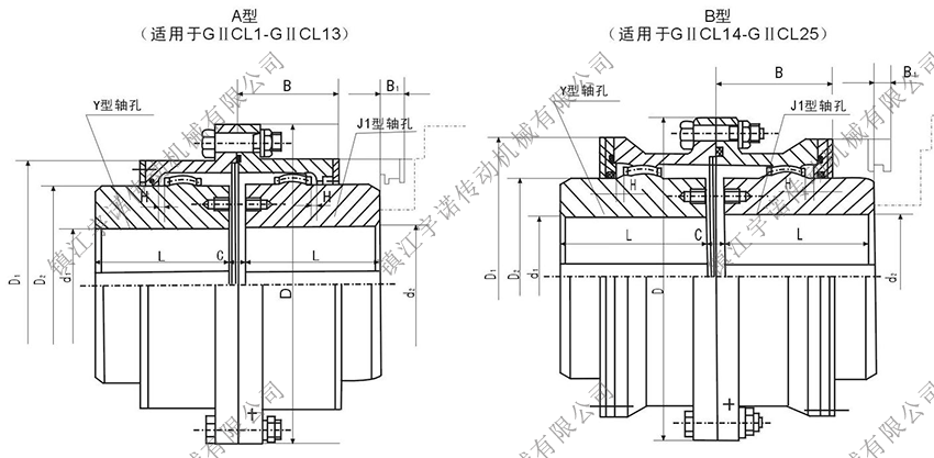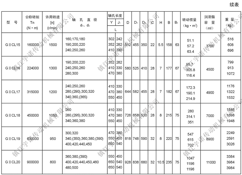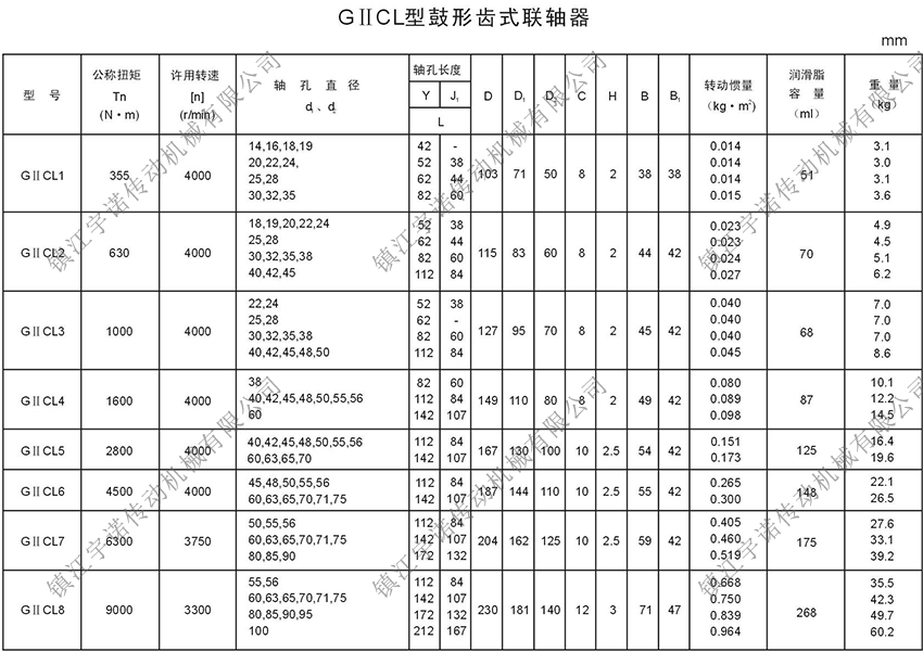 GⅡCL型基本型(窄型)鼓形齒式聯(lián)軸器密封端為整體型,可與Y、J1型軸伸聯(lián)接。齒間距小,允許相對(duì)徑向位移小,結(jié)構(gòu)緊湊,轉(zhuǎn)動(dòng)慣量小,適用于公稱(chēng)轉(zhuǎn)矩為400-4500000N.m,聯(lián)接水平兩同軸線(xiàn)軸系傳動(dòng)。鼓形齒式聯(lián)軸器適用場(chǎng)合:常用于低速重載工況條件的軸系傳動(dòng),高精度并經(jīng)動(dòng)平衡的齒式聯(lián)軸器可用于高速傳動(dòng),如燃汽輪機(jī)的軸系傳動(dòng),如冶金、礦山、起重運(yùn)輸?shù)刃袠I(yè)、也適用于石油、化工、通用機(jī)械等各類(lèi)重型機(jī)械的軸系傳動(dòng)。
